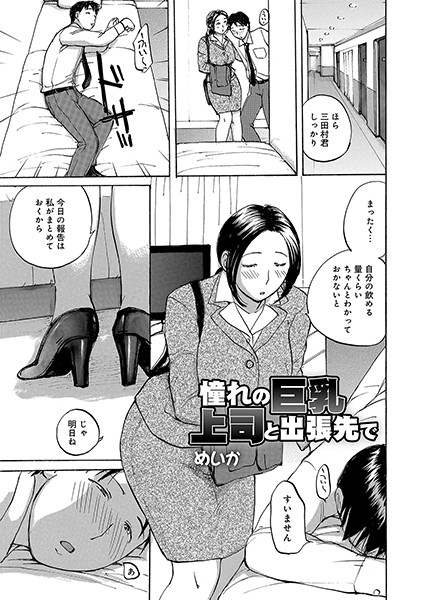 接待でしくじってしまった主人公。上司がビジネスホテルのベッドまで運んでくれた。そこで上司の巨乳に気づいて欲情してしまう…。
